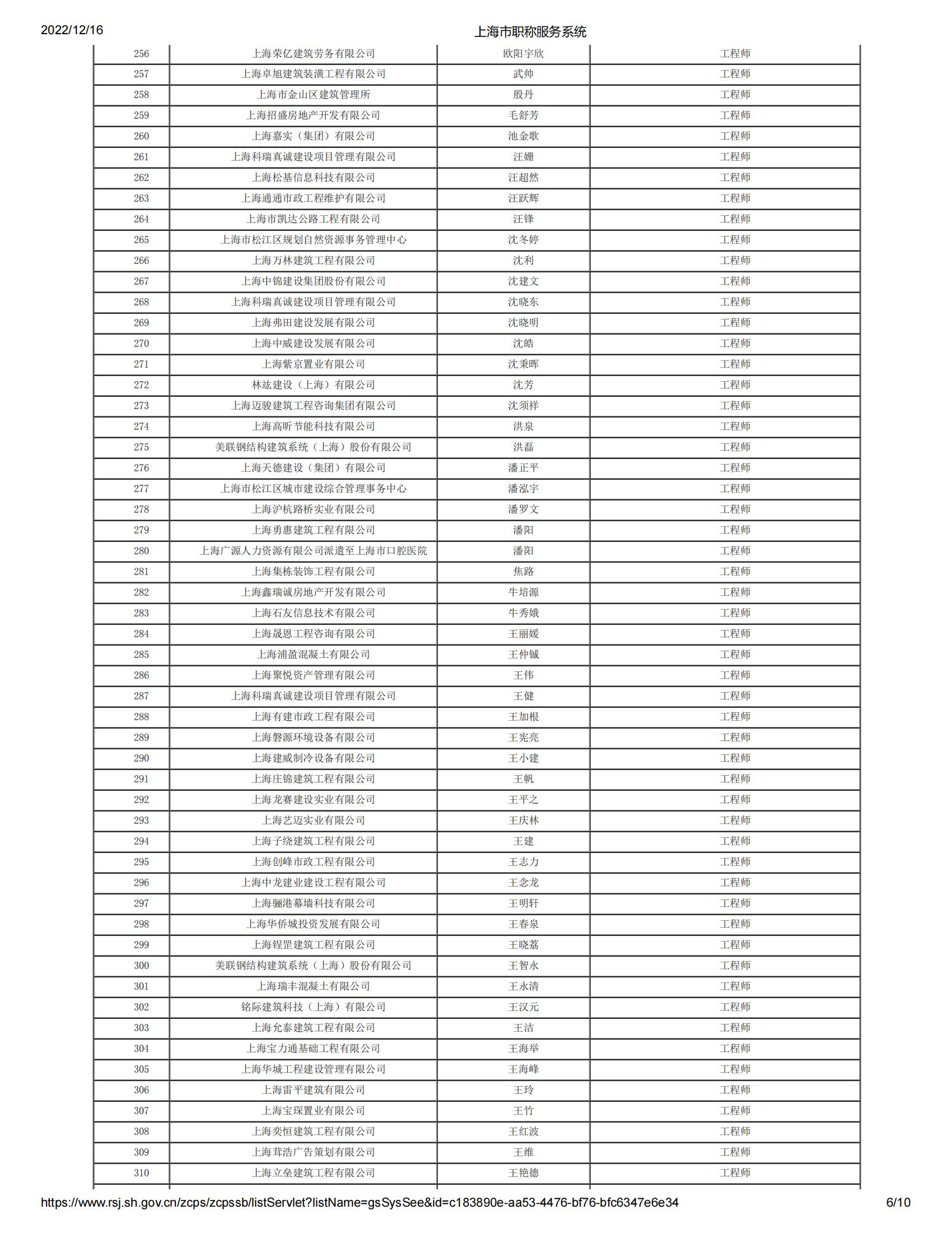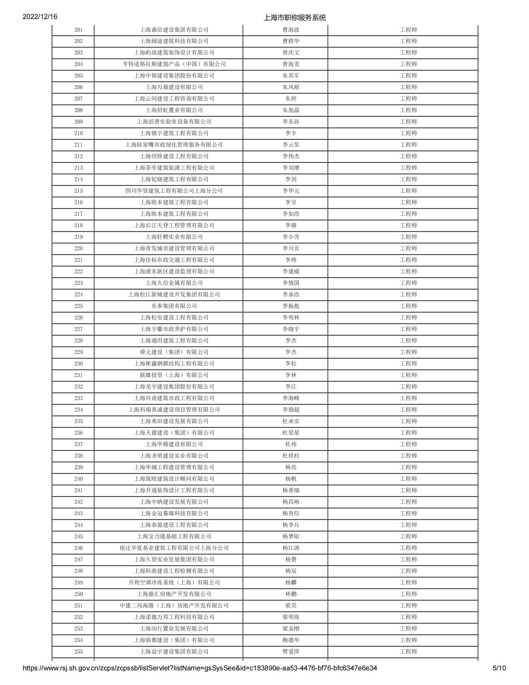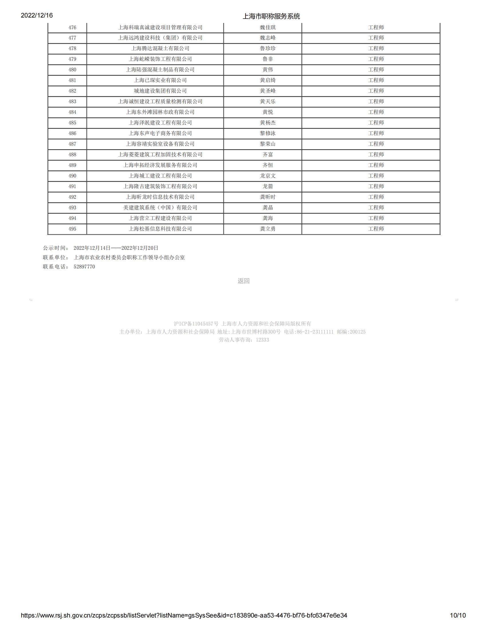 2022年度上海市工程系列郊區建筑工程中級專業技術職務任職資格評審委員會評審通過人員名單公示
