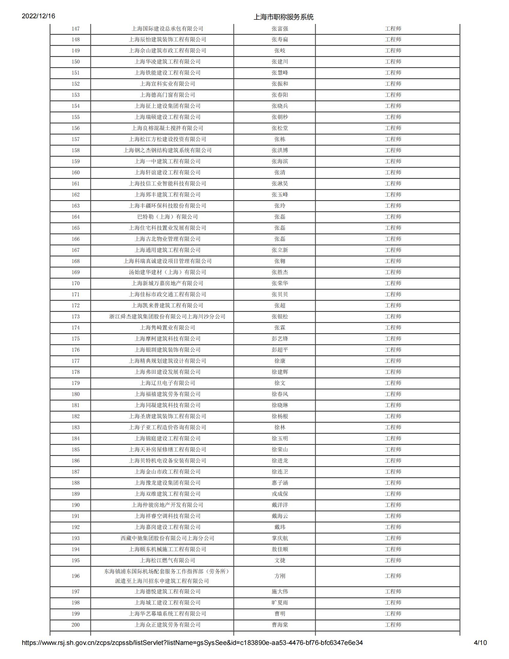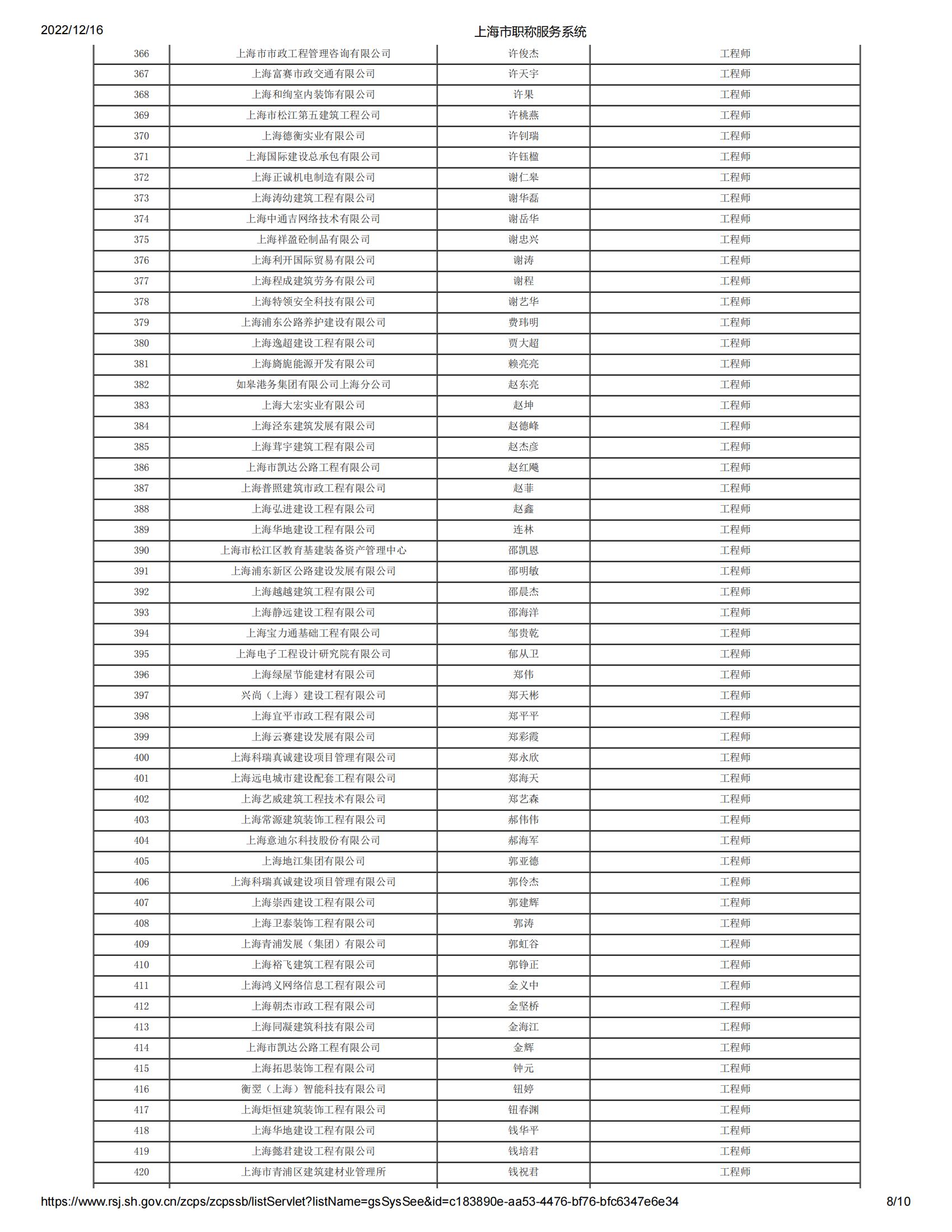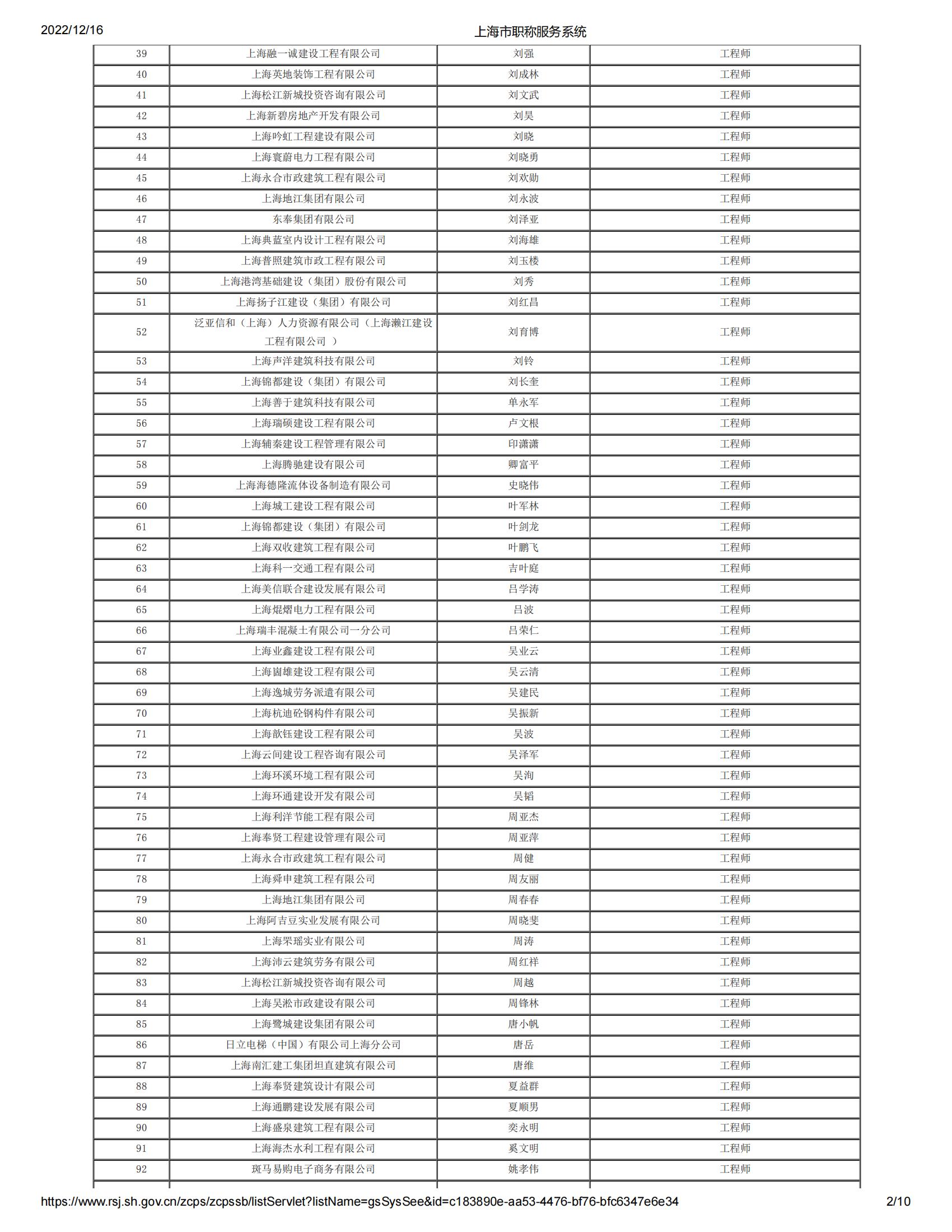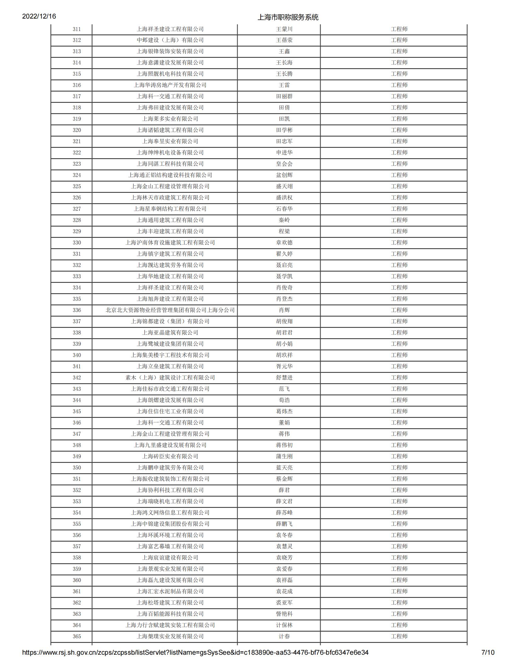 2022年度上海市工程系列郊區建筑工程中級專業技術職務任職資格評審委員會評審通過人員名單公示