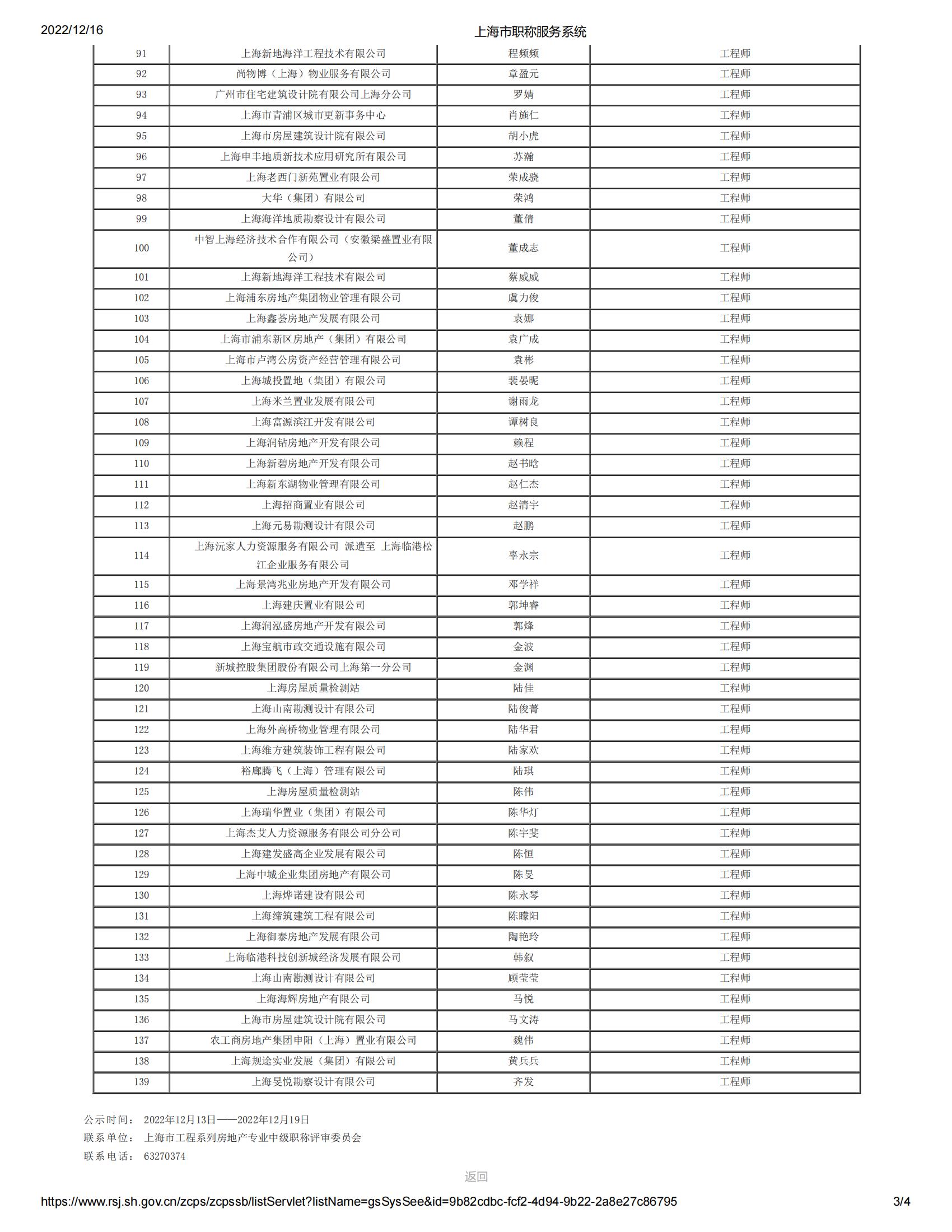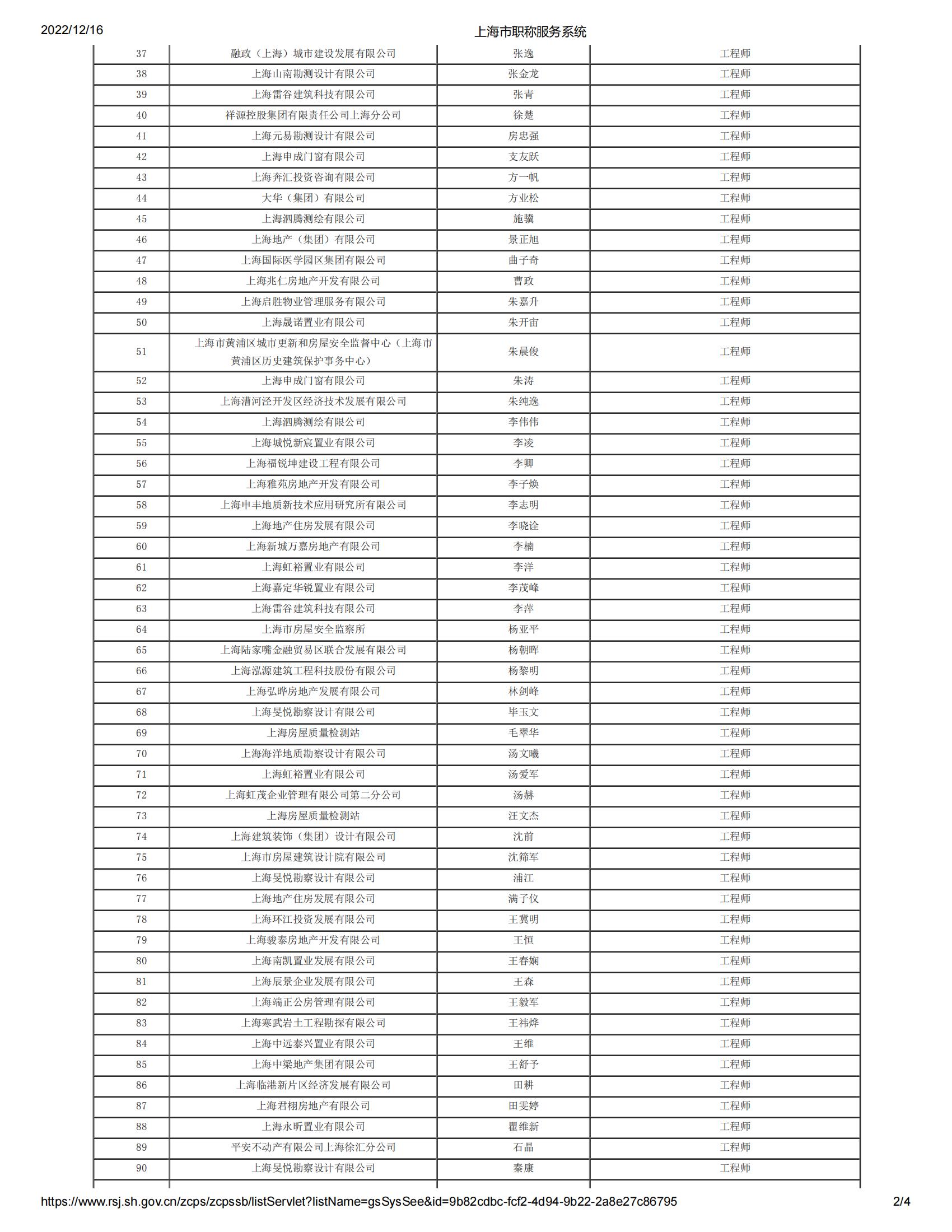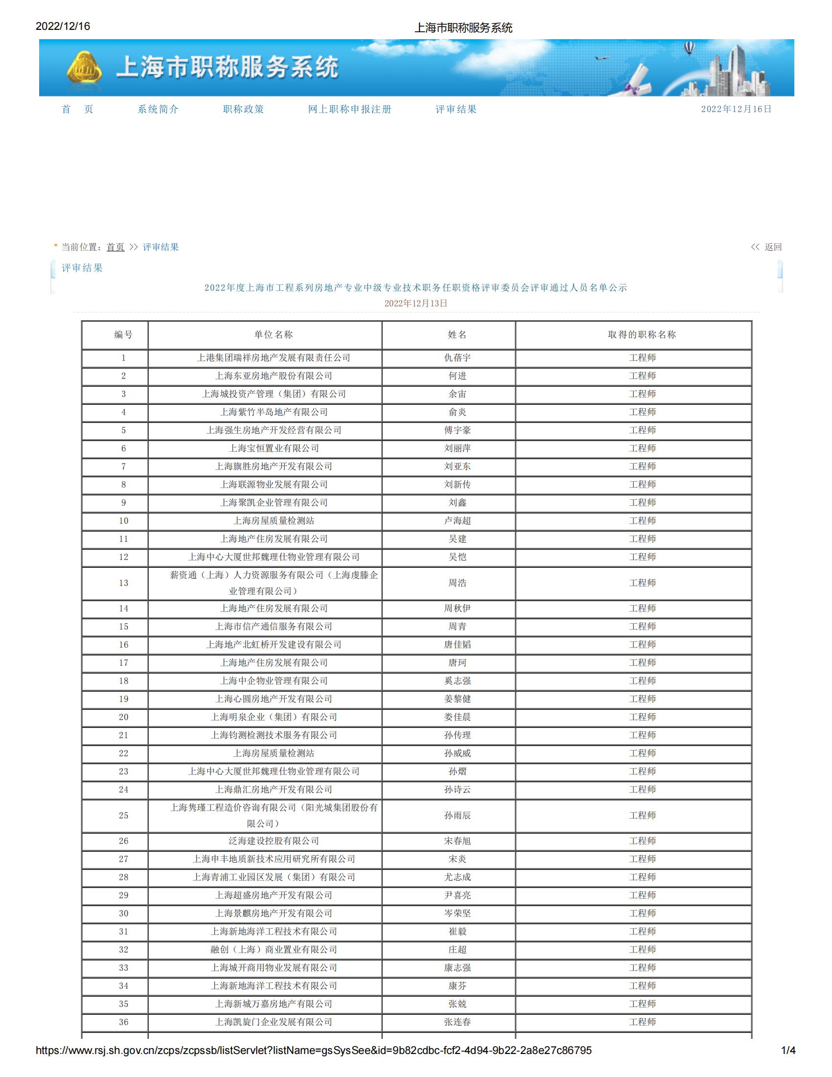 2022年度上海市工程系列房地產(chǎn)專業(yè)中級專業(yè)技術(shù)職務(wù)任職資格評審委員會評審?fù)ㄟ^人員名單公示