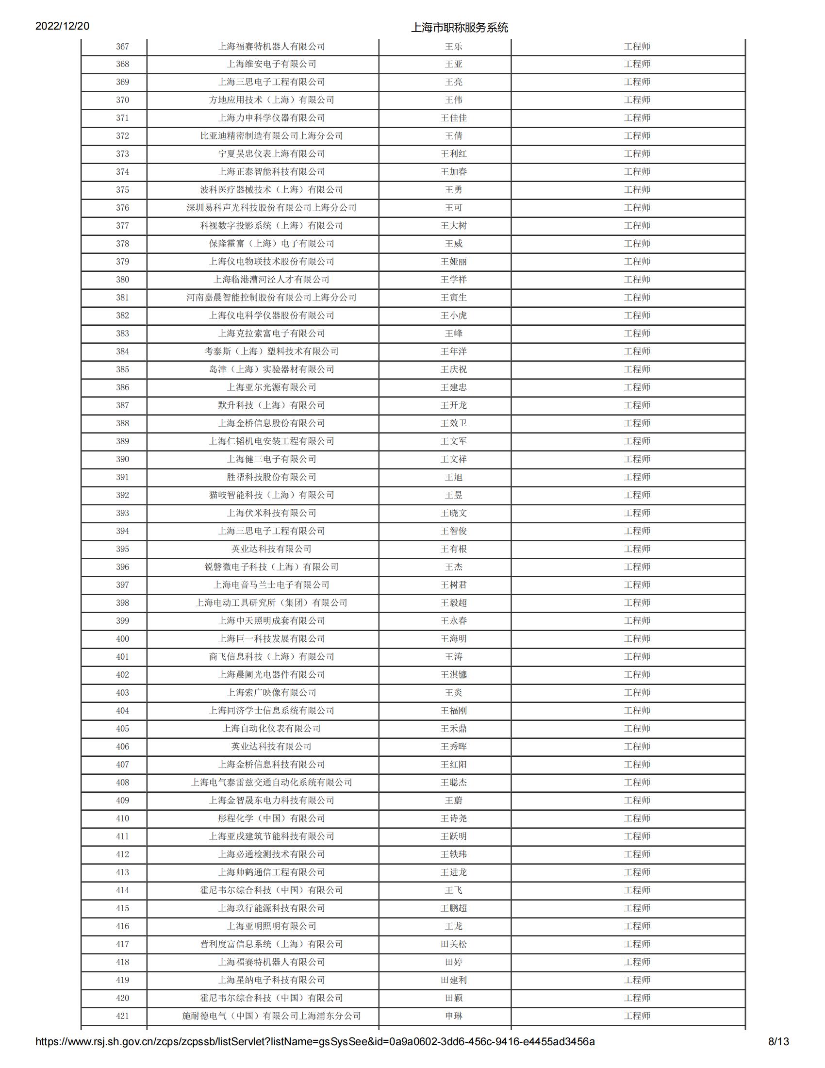 2022年度上海市工程系列計算機與數字技術專業中級職稱評審委員會(浦東新區)評審通過人員名單公示
